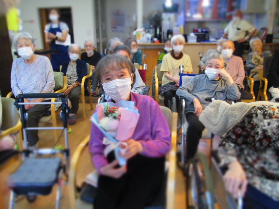 今年度は、米寿の方2名(88歳)、卒寿の方1名(90歳)のご入居者様が節目の年を迎えられました💐