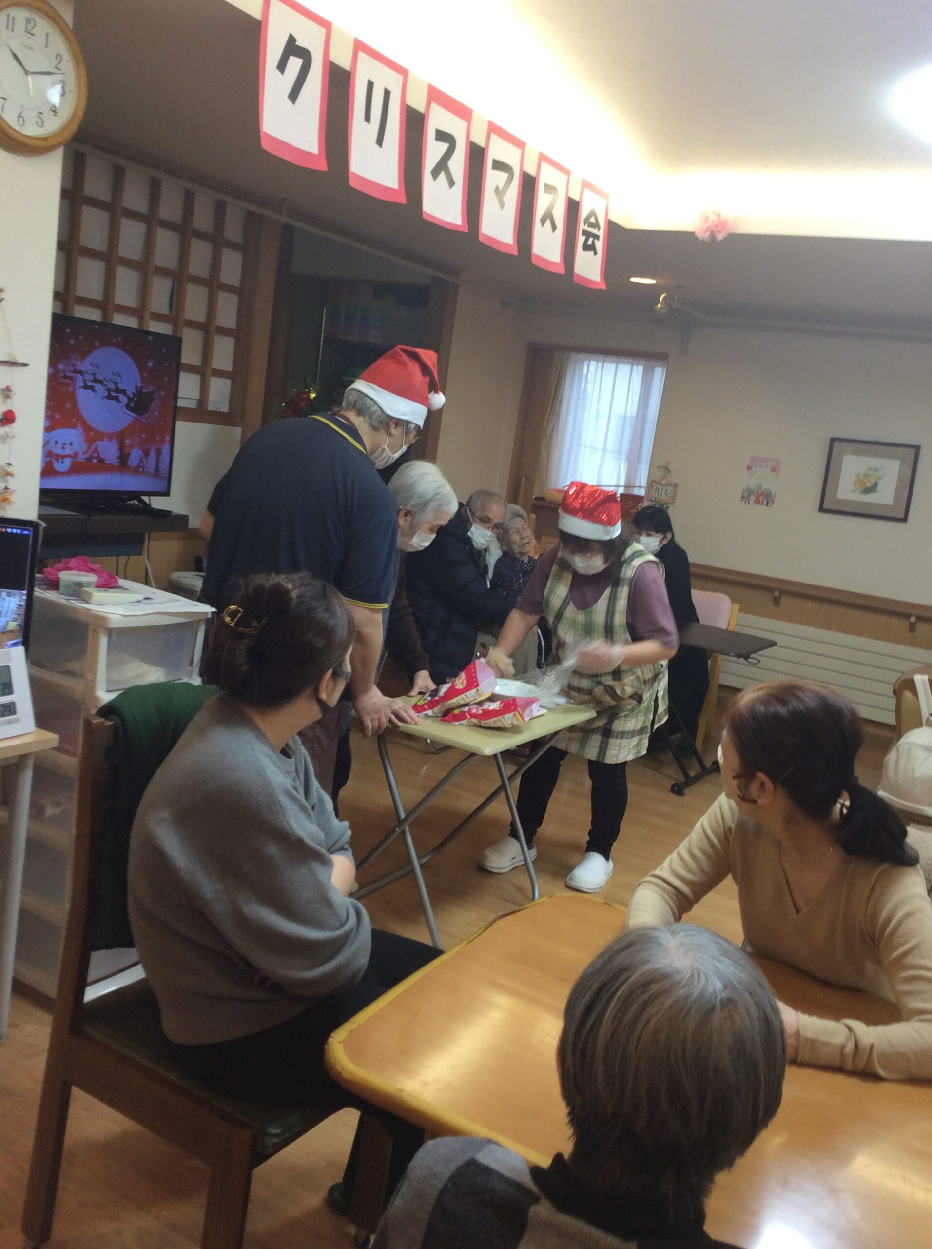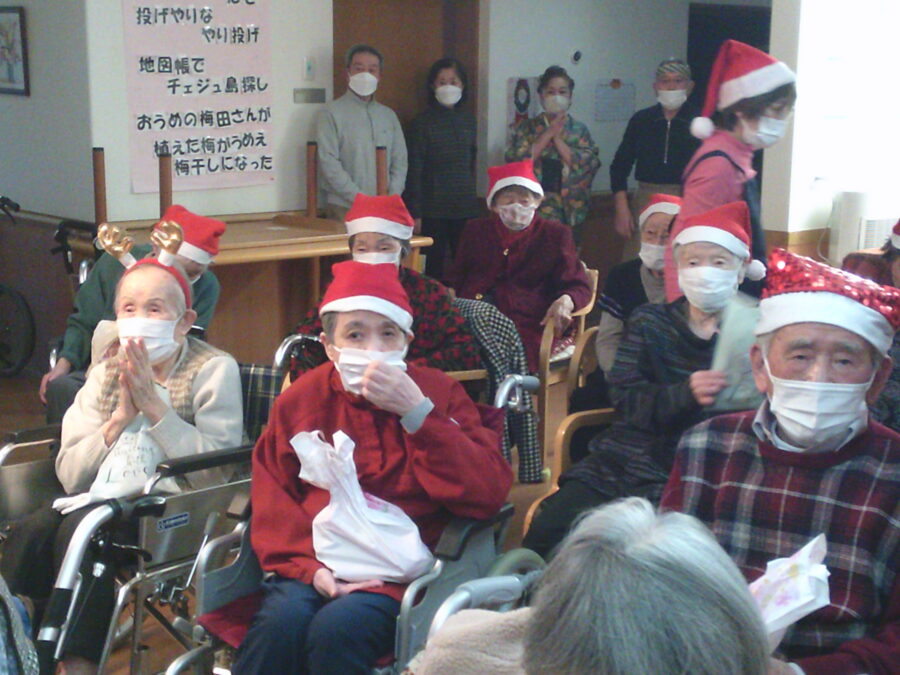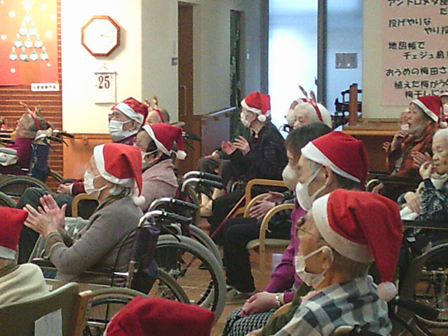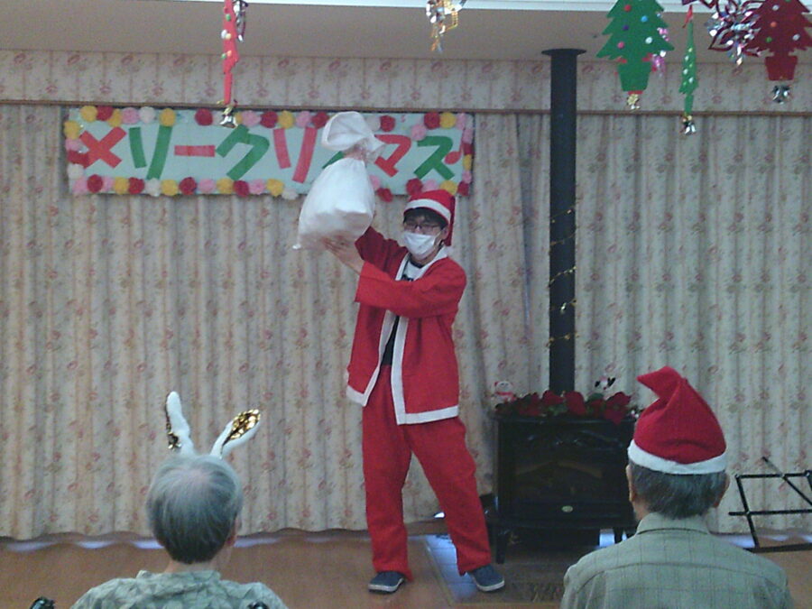 去る12月21日、遊楽館平岡では、ささやかながらクリスマス会を実施。感染症予防の観点から、ユニットごとの開催を行ないました。