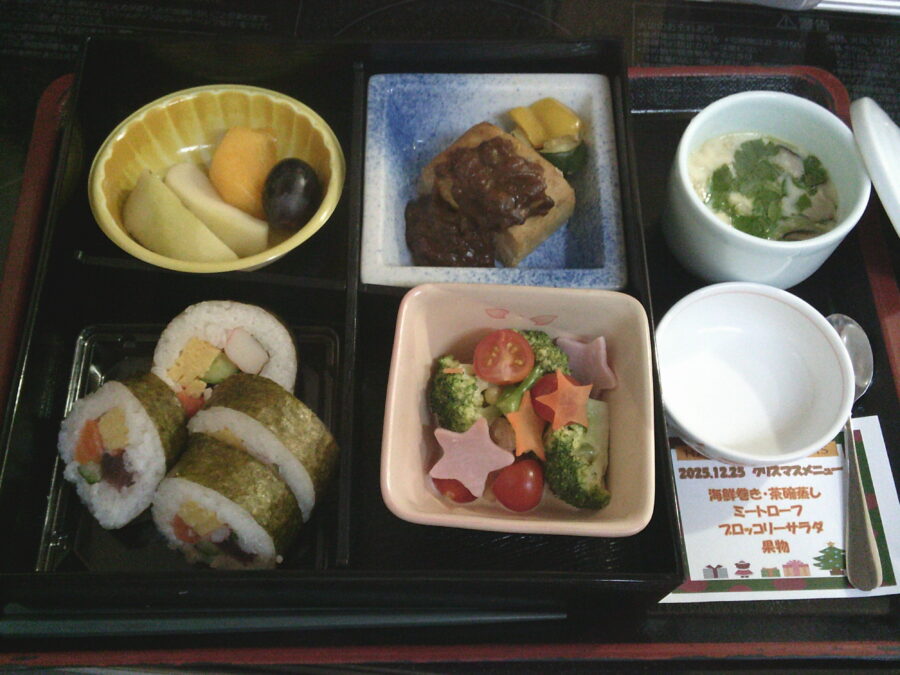 クリスマスメニューの一番人気は厨房職員お手製の巻寿司!!