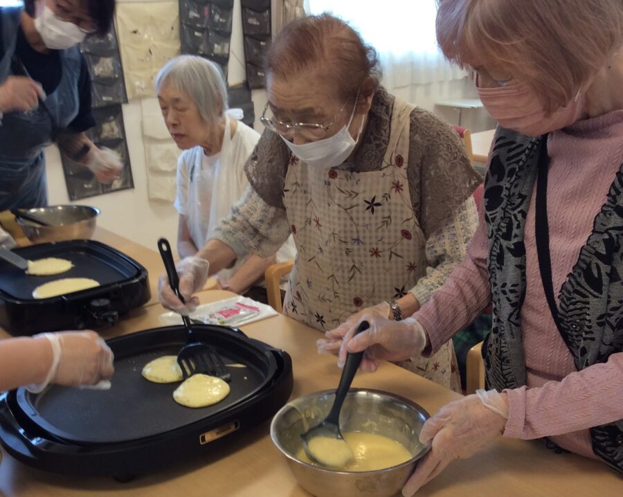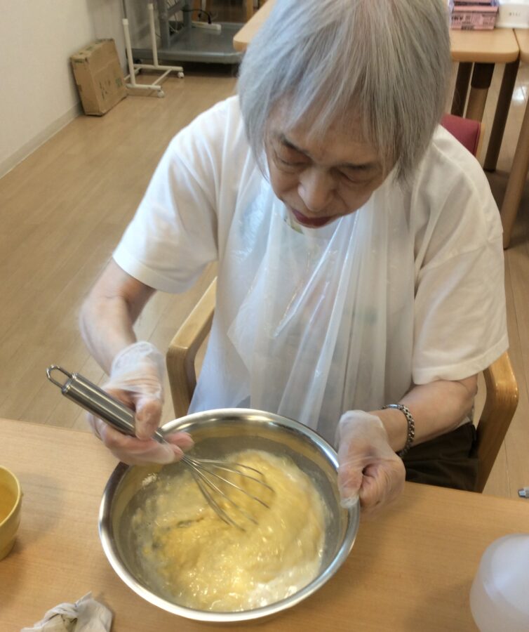 皆様こんにちは!「遊楽館」白石本通です。9月も暑かったですね。年々残暑が厳しく感じられます。さて…2025年の9月は皇族、悠仁様が成年式を迎えられました。なんと男性皇族の成年式は40年ぶりに行われたそうです。緊張したご様子はテレビ越しでも十分伝わりましたね。「遊楽館」白石本通の入居者様の中にはテレビがお好きな方が多く、一番ご覧になられているのは野球でした。やはり大谷翔平選手ですね⚾9月17日時点で50本目のホームランを打ち、二年連続で50本塁打はメジャーリーグ史上6人目だそうです✨✨すごいですね。白石本通の皆様も負けておりません。今月は皆さんにおやつ作りに挑戦して頂きました。題して…【どら焼きづくり】皆様に生地からお作り頂き、焼いて生地にあんこを包み召し上がっていただく…とても楽しいレクリェーションです。
